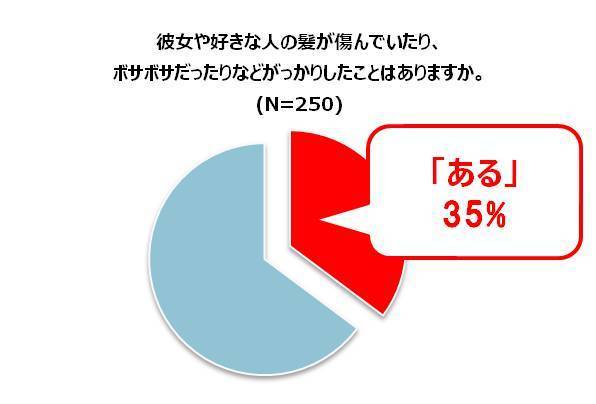 そんな「ボサボサ」「パサパサ」だったり「似合っていなかったり」する女性の髪にがっかりしたことがある男性の割合は35%となり、なんと3人に1人はがっかりした経験をされていることがわかります。